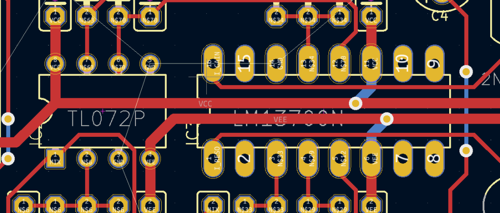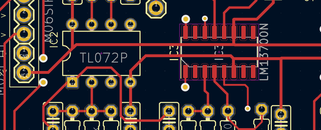 Some other highlights. The DRC settings were set to roughly default but I did space the VDD and VSS on the LM13700’s to be further spaced apart than the older design. My Thought was that the pads also shrunk so any more copper wont move the needle very much. Although we will see in the testing where that ends up.